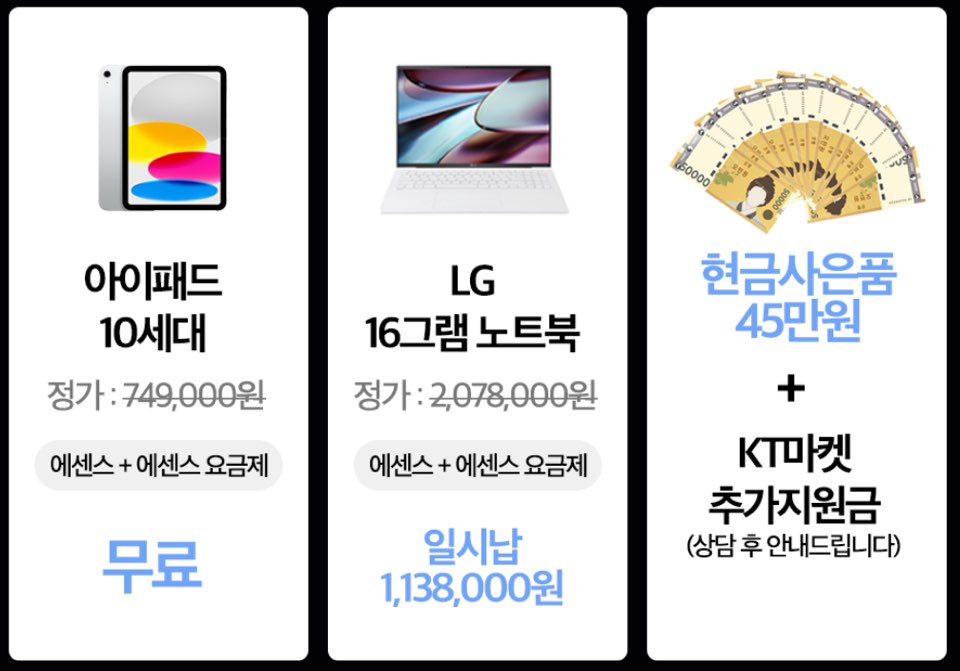 - KT/SKT/LG U+: 요금제와 연계한 특별 할인 제공
