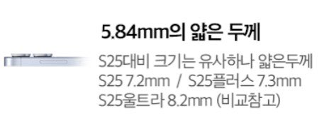 갤럭시 S25 엣지의 가장 큰 변화는 갤럭시 시리즈 역사상 가장 얇아졌다는 것이 특징입니다.