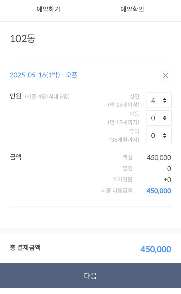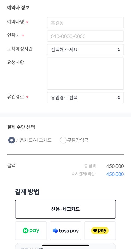 7. 마지막으로 결재를 진행하시면 예약이 완료가 됩니다.
