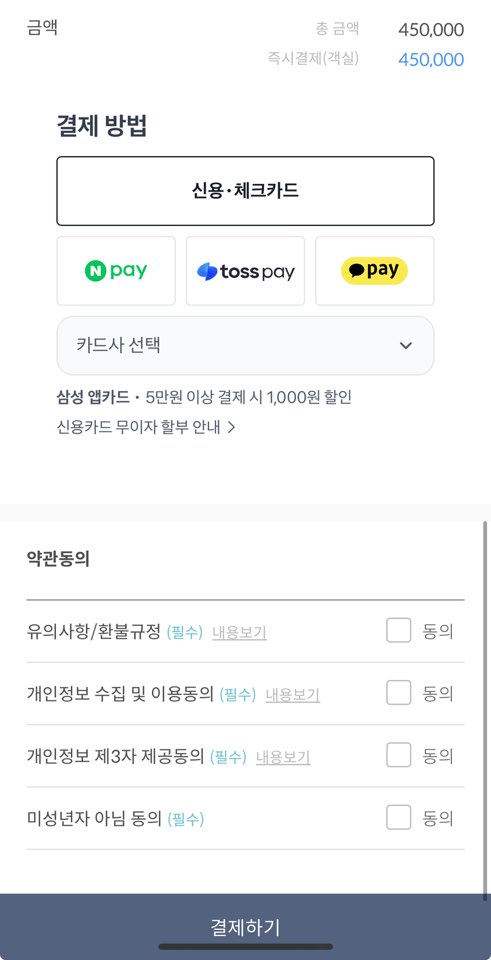 6. 결제 방법을 선택하시고 약관에 동의를 합니다.